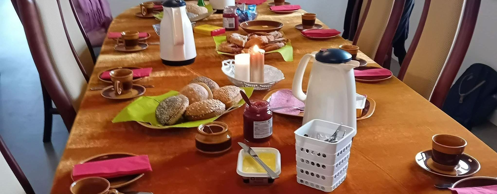 Vi serverer kaffe/the sammen med et rundstykke og kage til 20,- kr.
